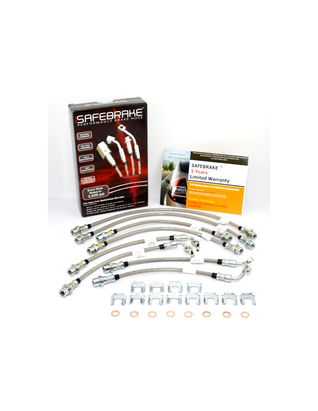 Our Quality Commitment: When you purchase SAFEBRAKE® brake hoses, you get peace of mind knowing that you are entitled to five years warranty. Even though we are confident that our product will last the lifetime of your car, we offer an active 5 years warranty so we able to monitor your satisfaction in using our product. The warranty will give you full replacement of the product should there are defects due to manufacturing. (Please refer to our Warranty Terms & Conditions)
