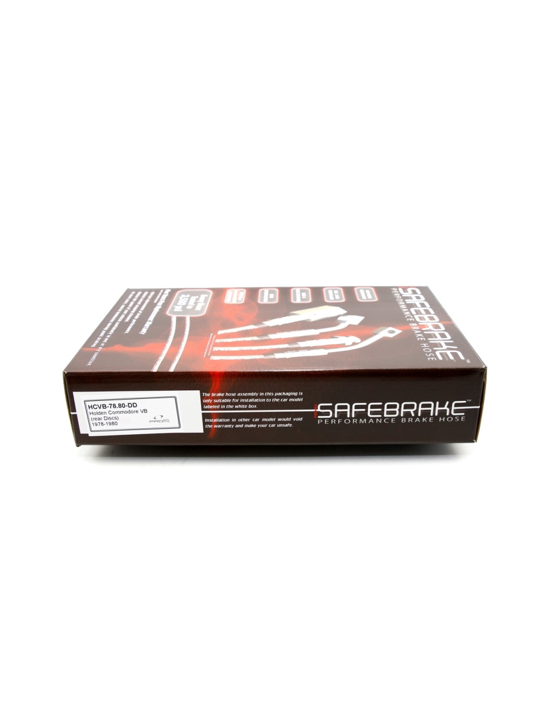 This SAFEBRAKE performance brake hoses kit suits 'Commodore VB Sedan & Wagon I6 & V8, SL, SL/E model 1978-1980, with rear discs brake'. This kit improves your car brake performance noticeably through the elimination of line expansion caused by the standard rubber brake hoses. Your car will be a joy to drive after the installation of SAFEBRAKE brake hoses kit.