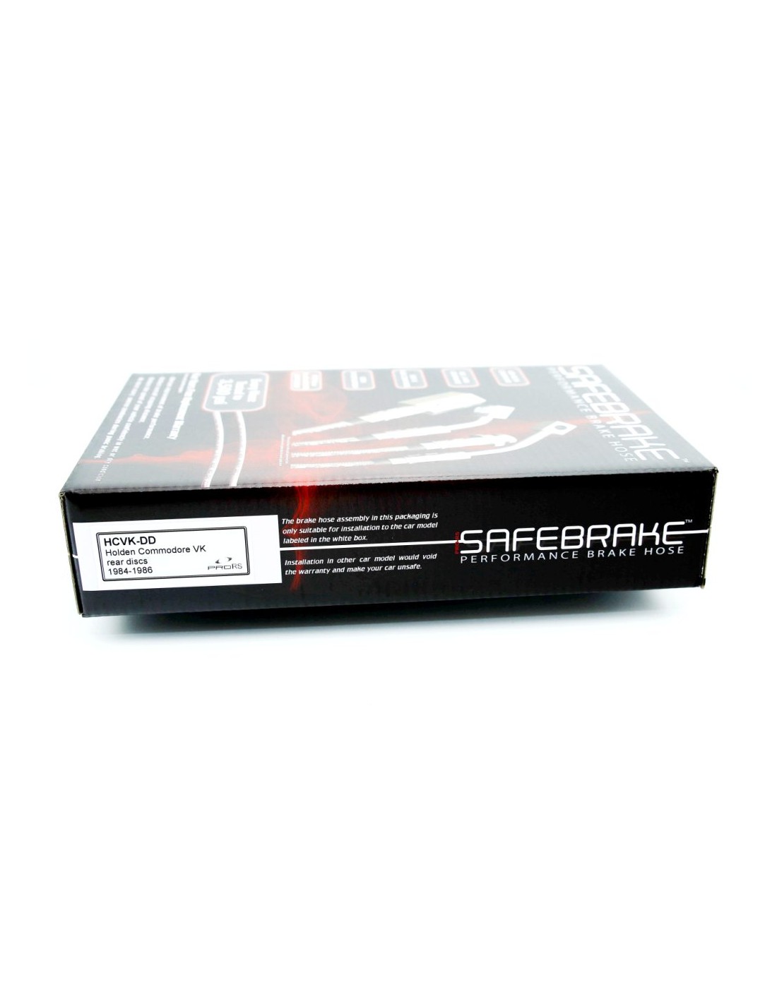This SAFEBRAKE performance brake hoses kit suits 'Commodore VK I6-V8 with rear discs'. This kit improves your car brake performance noticeably through the elimination of line expansion caused by the standard rubber brake hoses. Your car will be a joy to drive after the installation of SAFEBRAKE brake hoses kit.
